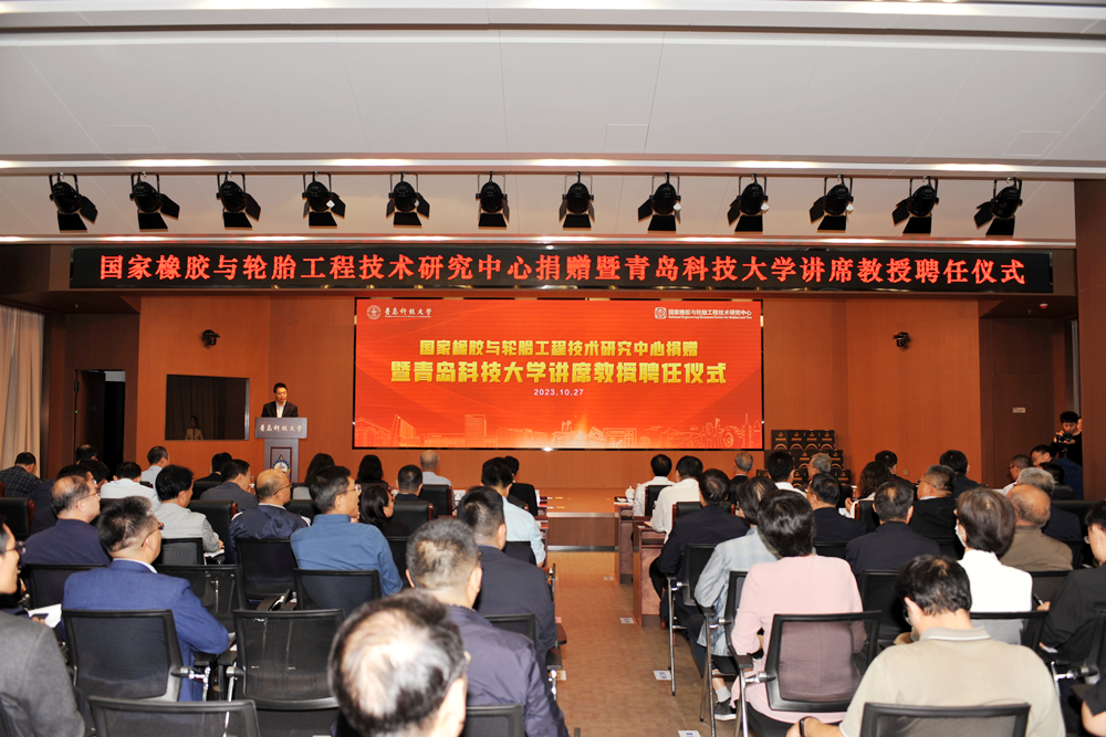 10月27日下午,国家橡胶与轮胎工程技术研究中心(以下简称“国橡中心”)捐赠暨beat365正版唯一官网讲席教授聘任仪式在beat365正版唯一官网崂山校区“软控学术报告厅”举行。beat365正版唯一官网党委书记李兴伟、校长陈克正,轮胎先进装备与关键材料国家工程研究中心主任汪传生教授,国橡中心主任、赛轮集团名誉董事长袁仲雪,国橡中心首席科学家、怡维怡橡胶研究院院长王梦蛟,国橡中心首席顾问、怡维怡橡胶研究院常务副院长许叔亮,赛轮集团总裁谢小红,软控股份董事长官炳政,益凯新材料有限公司总经理王正出席仪式。beat365正版唯一官网党委领导班子成员,职能部门、各学院中层副职以上干部,以及校研究生会、学生会代表参加仪式。捐赠仪式由校党委常委、副校长吕万翔主持。