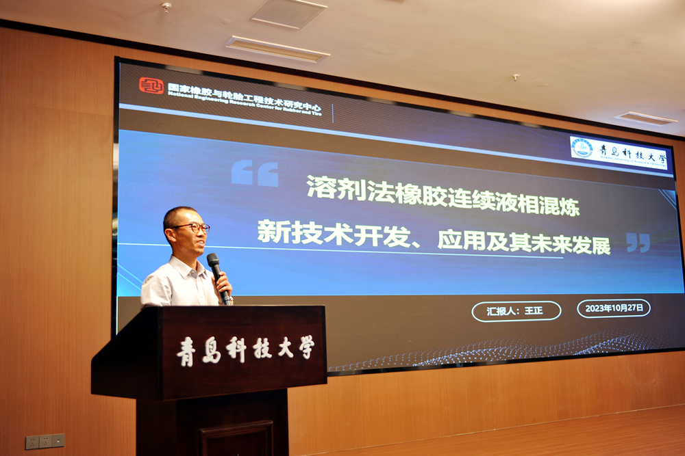 仪式结束后,在“软控学术报告厅”举办“干部大讲堂”,王正作了题为《溶剂法橡胶连续液相混炼新技术开发、应用及其未来发展》的报告,他从化学炼胶的技术特点和理论依据、EVEC®胶的物理性能、市场应用和工业化进程三个方面,详细介绍了化学炼胶新技术的开发应用,并对未来发展进行了展望。袁仲雪作了题为《国橡中心的起源与发展》的报告,他深情回顾了从学校到创立软控,再到成立国橡中心的发展历程,以24个关键点全面总结了国橡中心在深耕基础研究、橡胶新材料、智能装备和工业互联网等领域取得的成绩,系统阐述了国橡中心“信任尊重”的文化理念以及对未来的展望和规划。