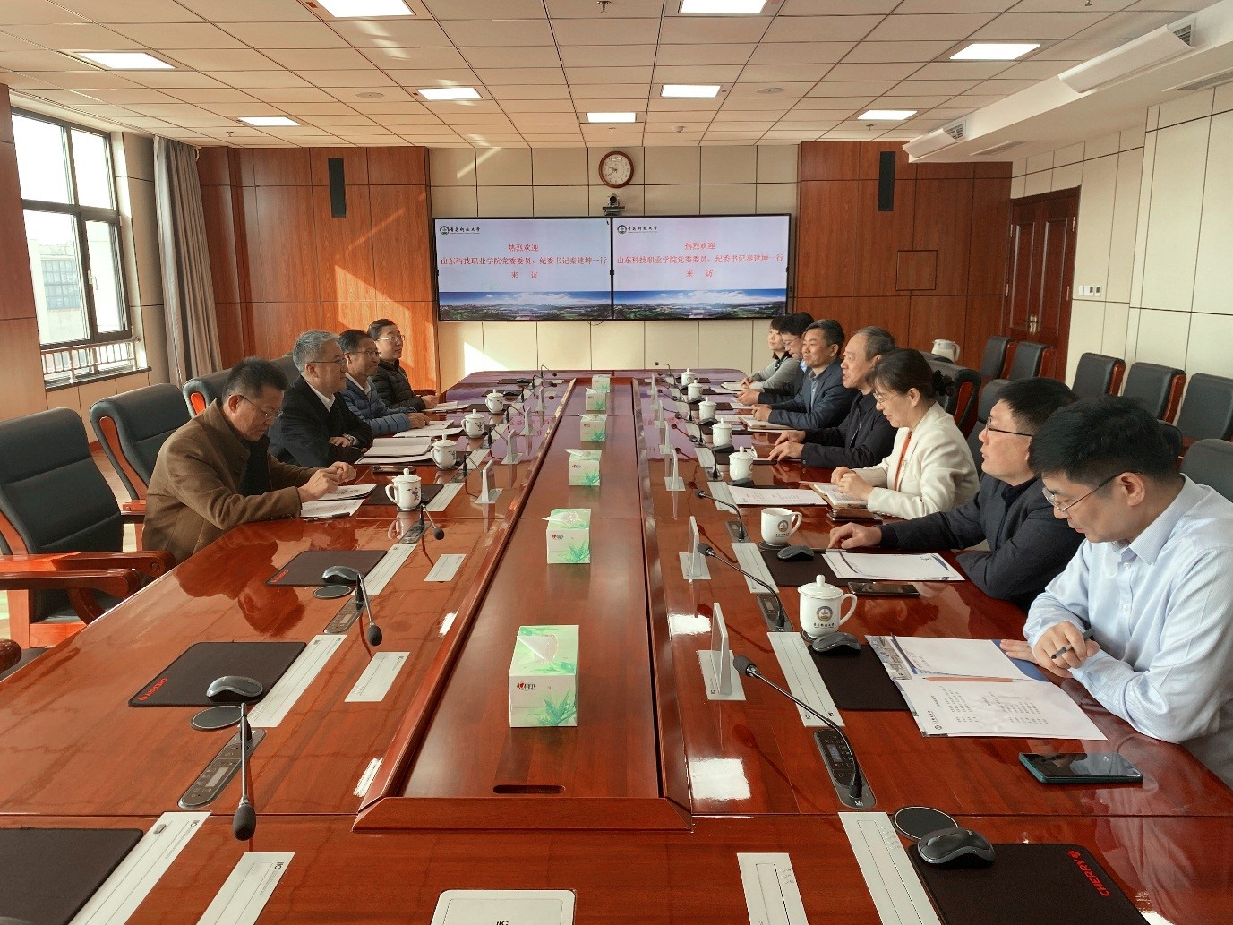 11月14日,山东科技职业学院党委委员、纪委书记秦建坤等一行4人来校交流纪检监察工作。校党委常委、纪委书记、省监委驻beat365正版唯一官网监察专员刘明永出席座谈会。