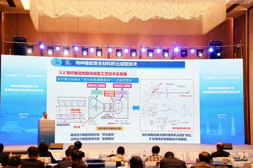 签约仪式后,以泰山学者攀登计划专家、轮胎先进装备与关键材料国家工程技术中心主任汪传生教授为代表的六位教授团队,分别围绕高端装备制造方向、高分子材料军民融合方向、化工过程强化方向、新一代信息技术方向、过程系统工程方向、高端聚烯烃催化剂方向等进行了项目路演。