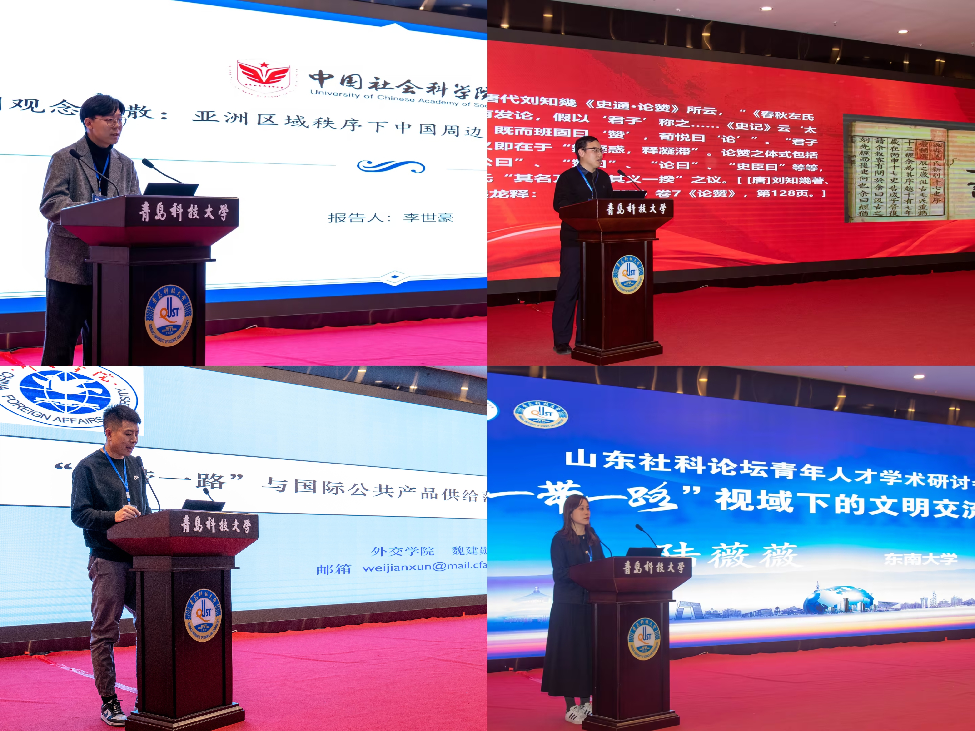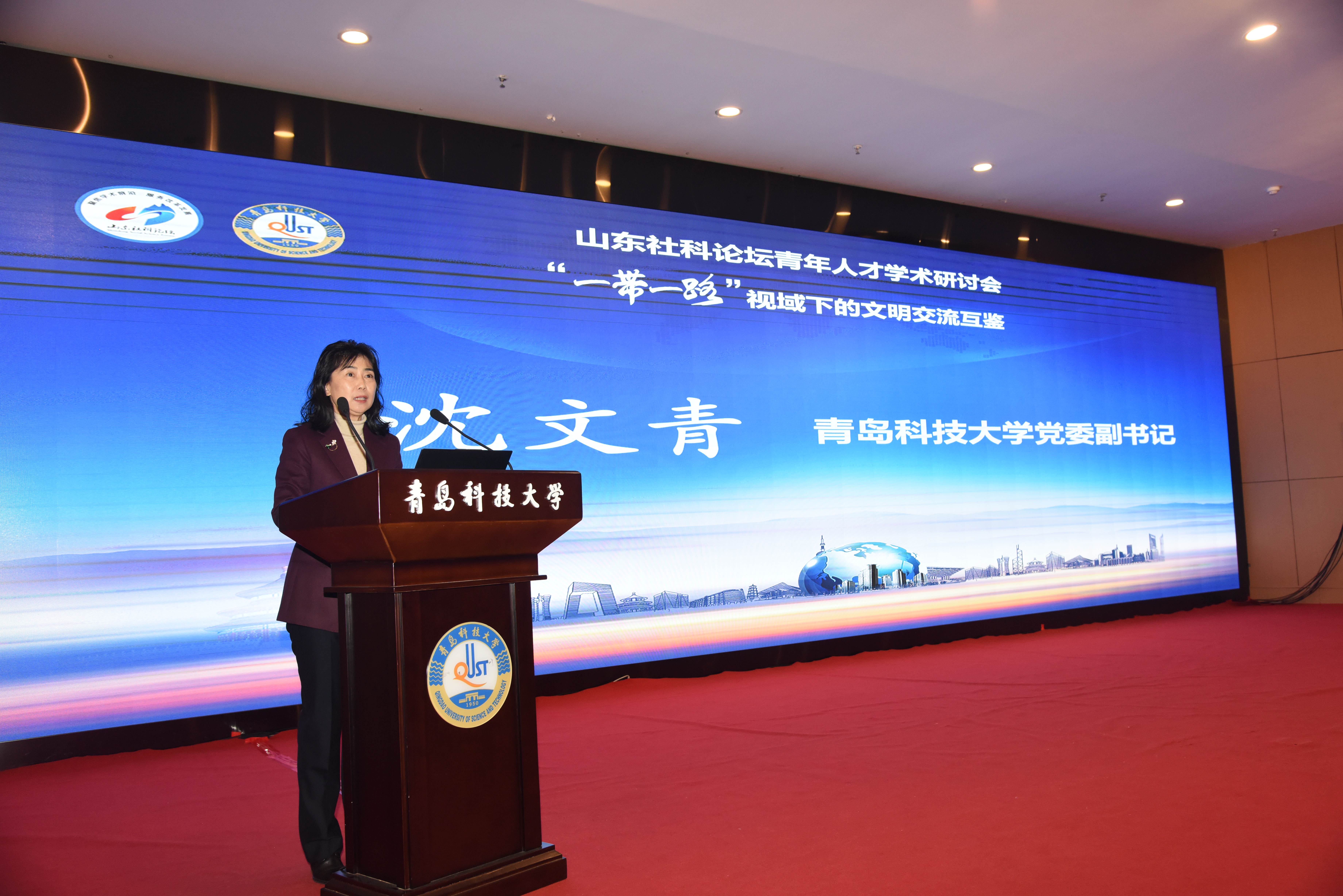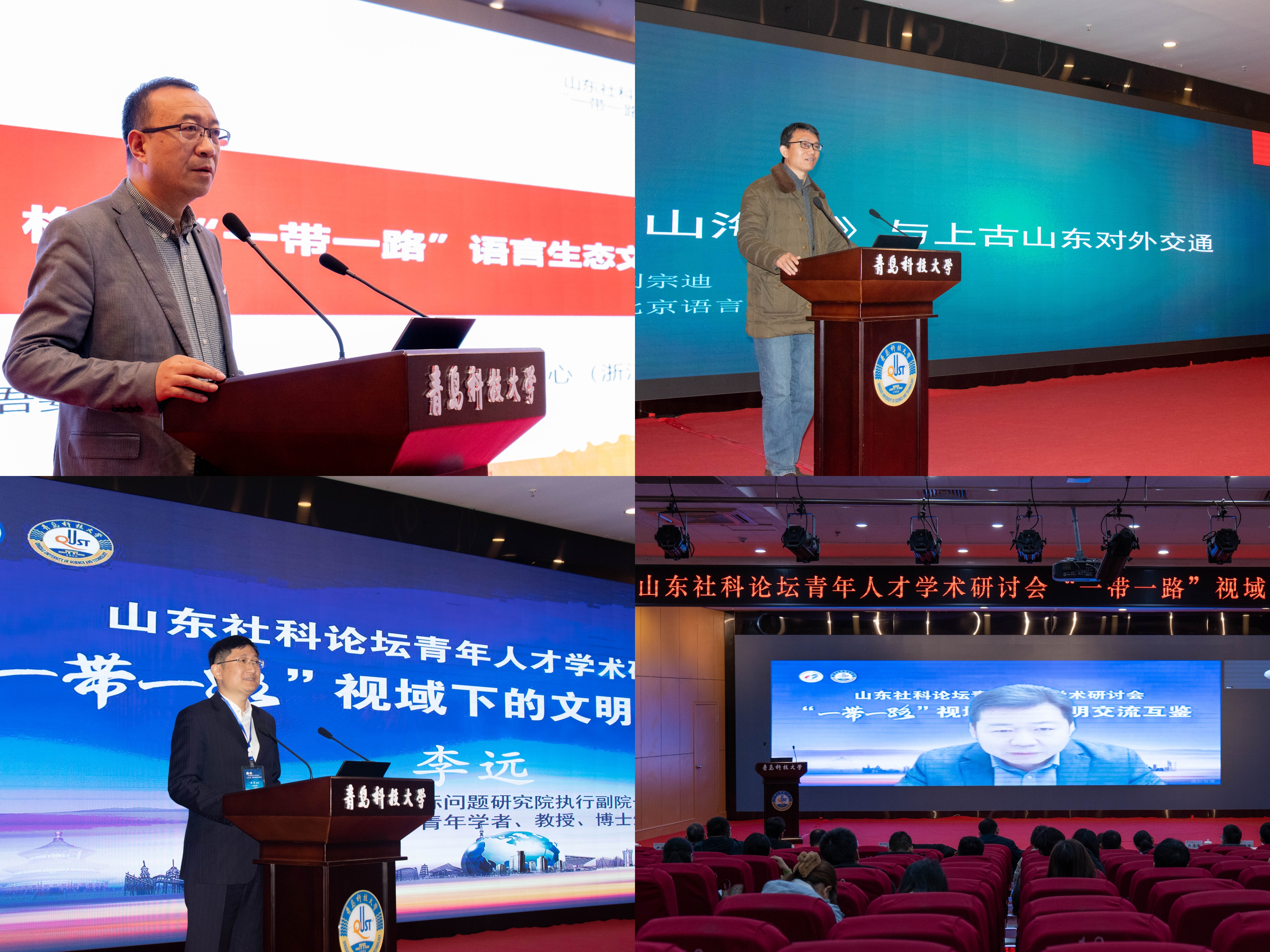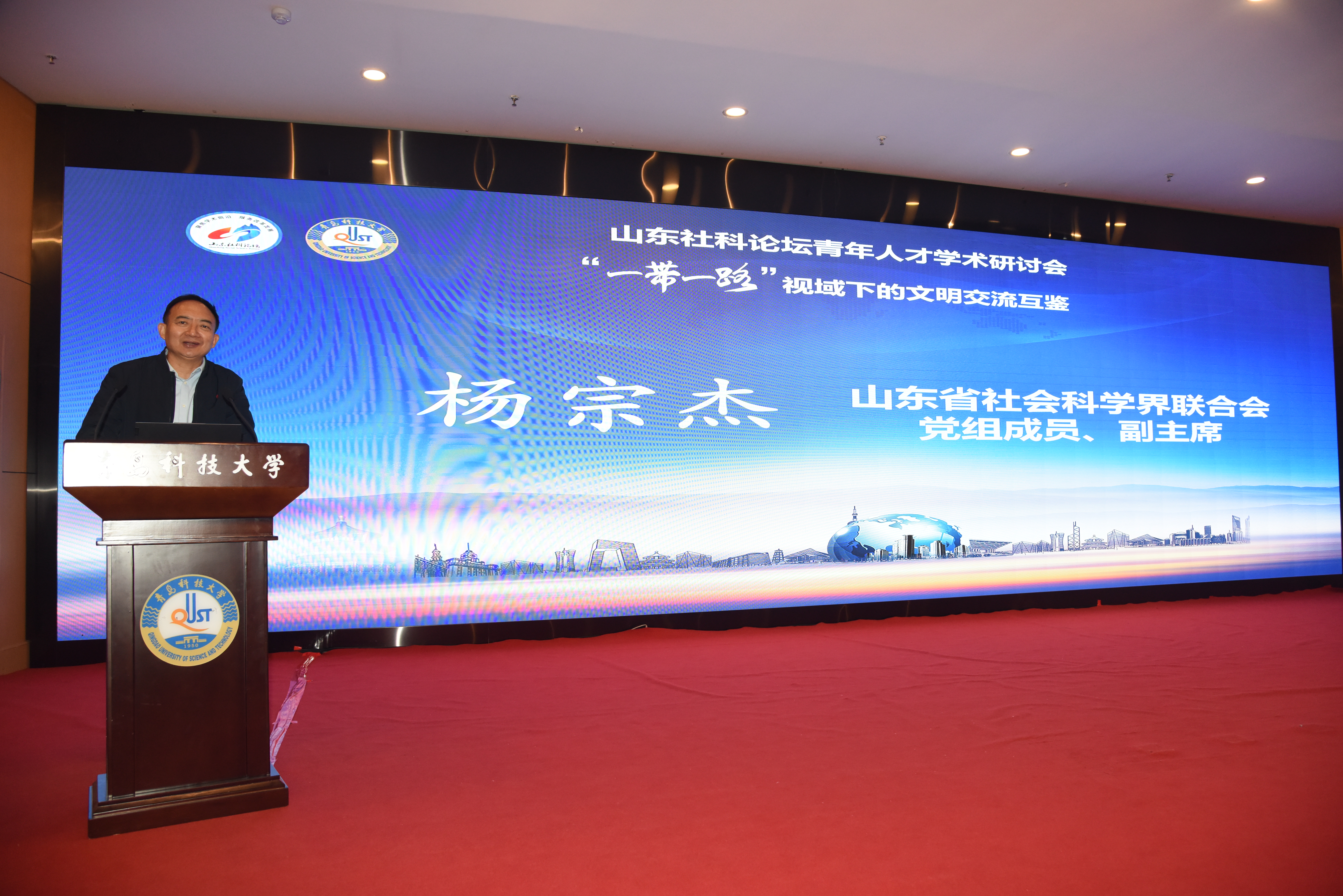 11月24日,山东社科论坛青年人才学术研讨会——“一带一路”视域下的文明交流互鉴在beat365正版唯一官网召开。山东省社科联党组成员、副主席杨宗杰,青岛市社科联党组书记、副主席郑海涛,《山东社会科学》杂志社社长、主编刘要停,学校党委书记李兴伟、党委副书记沈文青等出席开幕式。