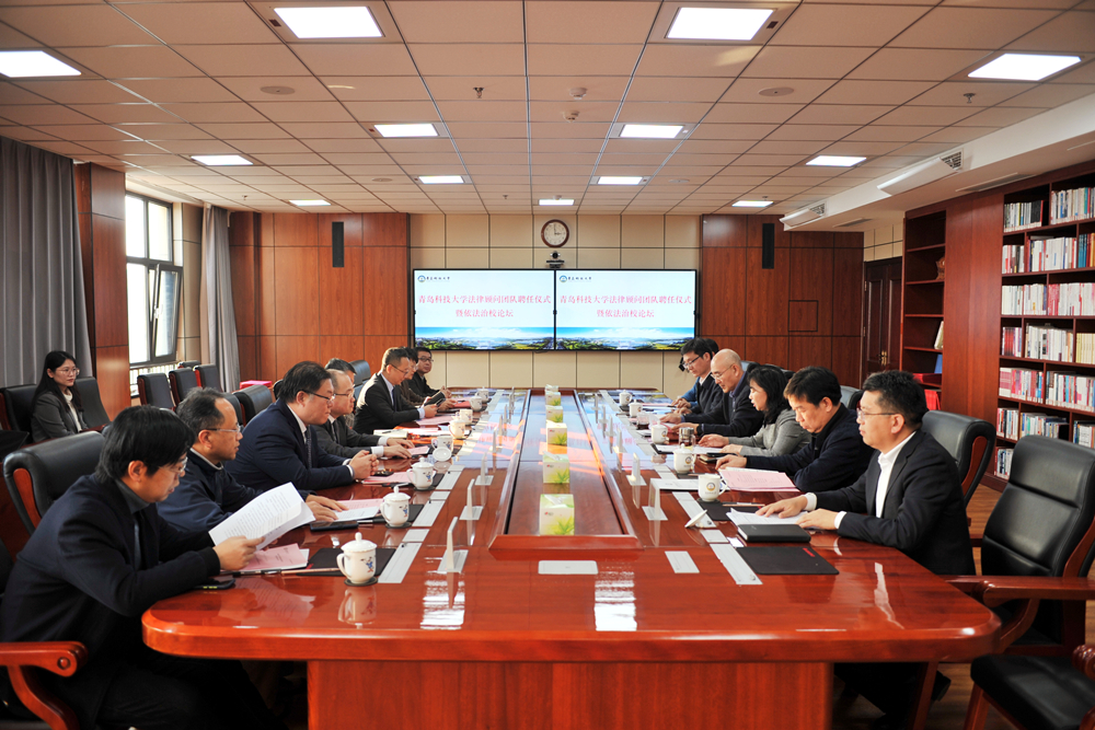 12月5日,学校在崂山校区综合服务楼5015会议室举办法律顾问团队聘任仪式暨依法治校论坛,校长陈克正出席论坛并讲话,论坛由党委副书记沈文青主持。
