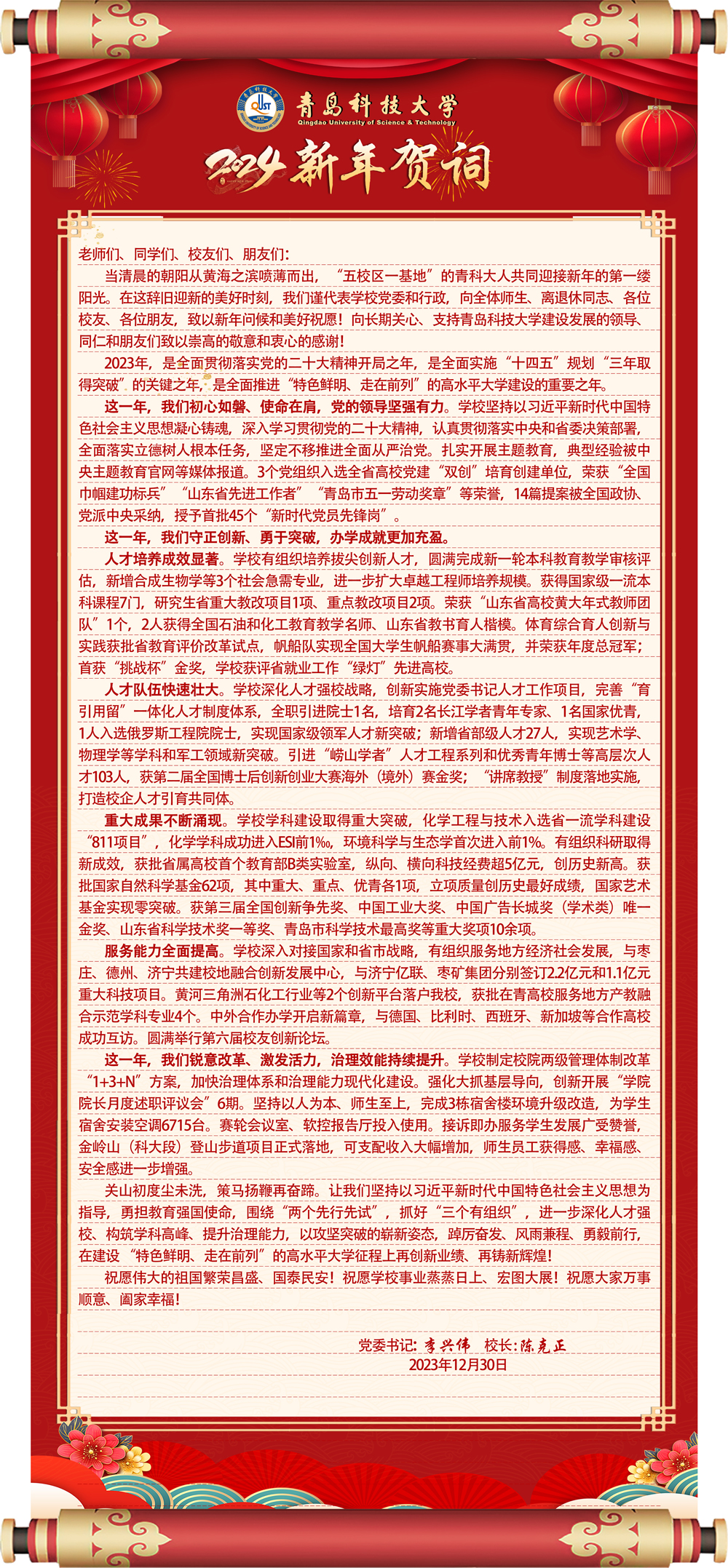 作者:李兴伟 陈克正 来源:党委(校长)办公室 责任编辑:李鲲鹏 陈冬莉终审:张洪坤 点击: 日期:2023-12-30