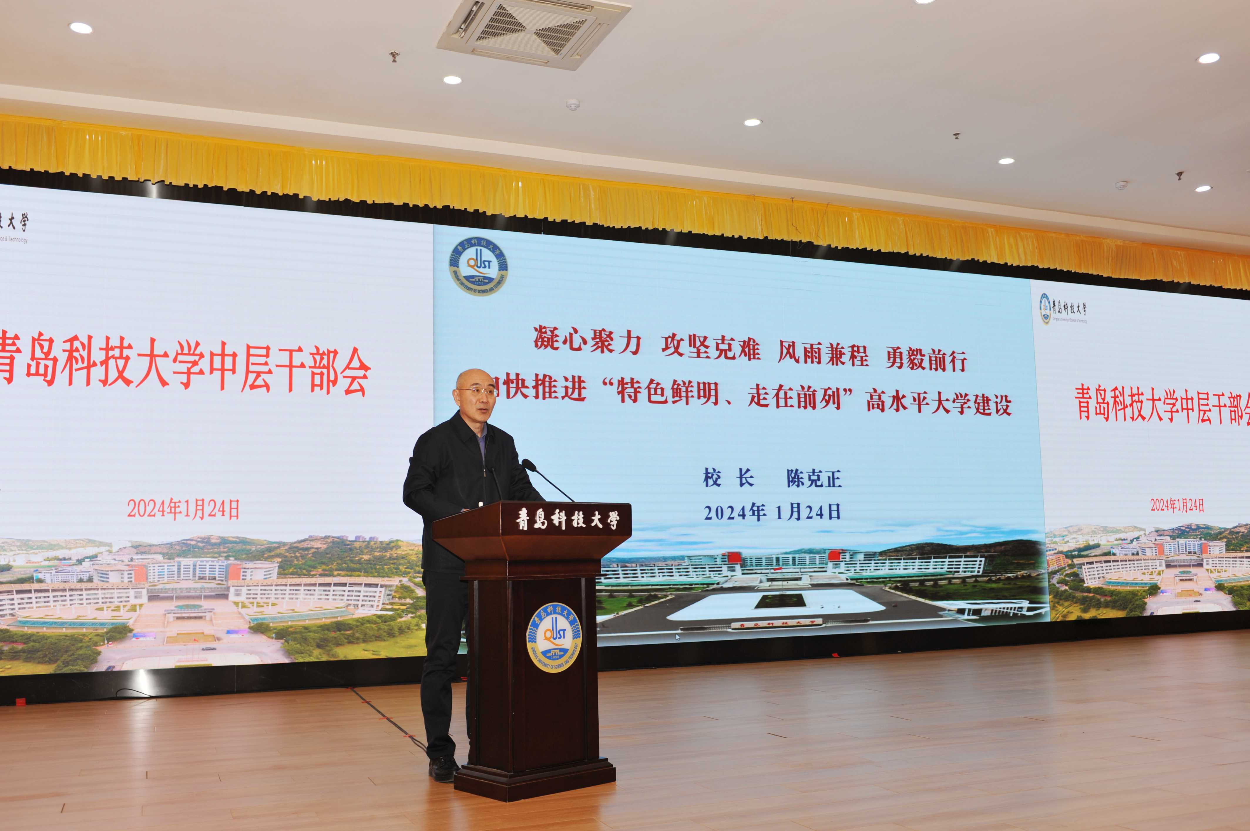 1月24日上午,学校在崂山校区第二报告厅召开中层干部会,党委书记李兴伟主持并讲话,校长陈克正对2023年工作进行总结并部署2024年工作,学校领导班子成员出席会议。