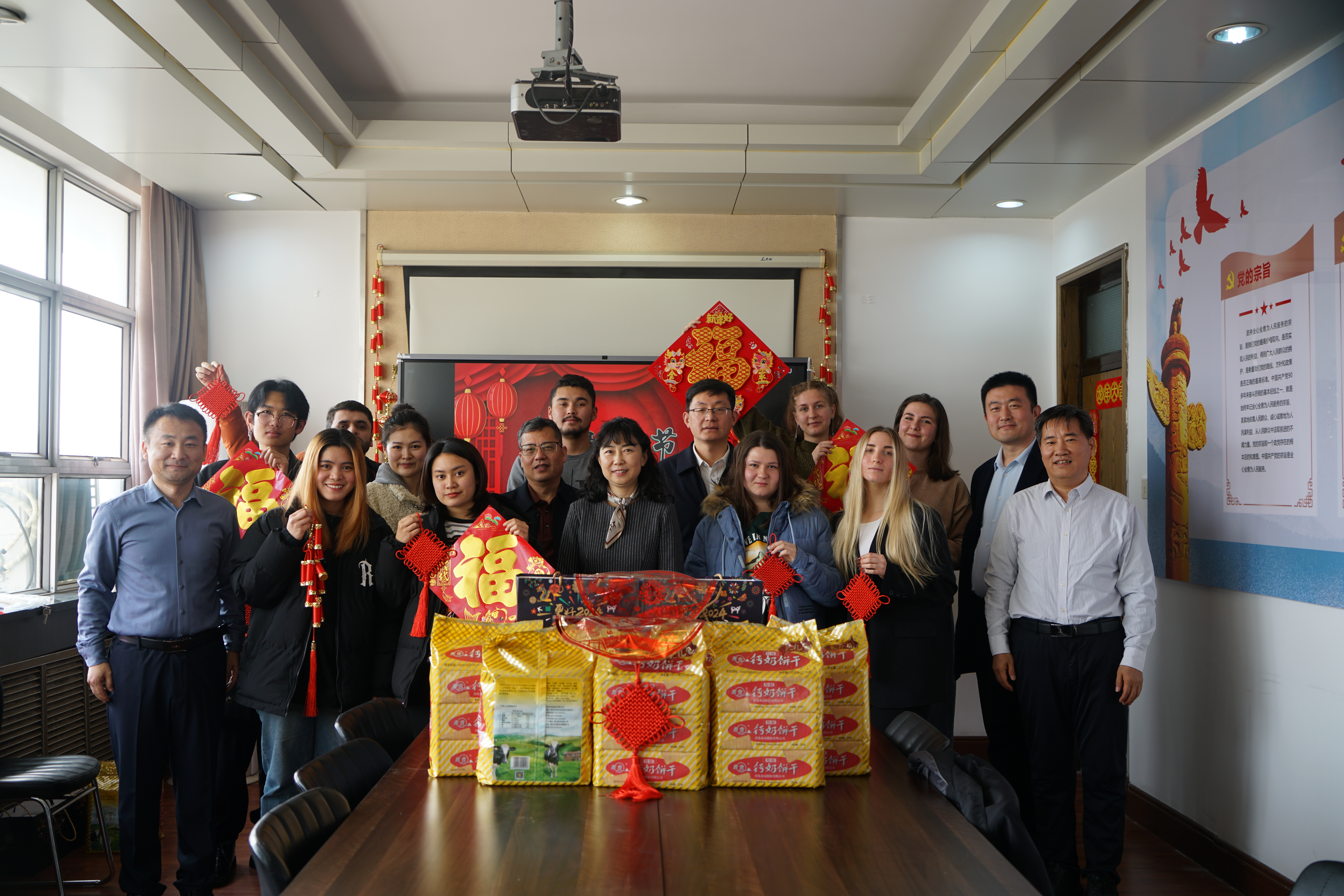 2月8日上午,学校党委副书记沈文青代表学校党委亲切看望在校留学生,为他们送上节日问候和新春祝福,并与留学生代表开展新春茶话座谈交流。