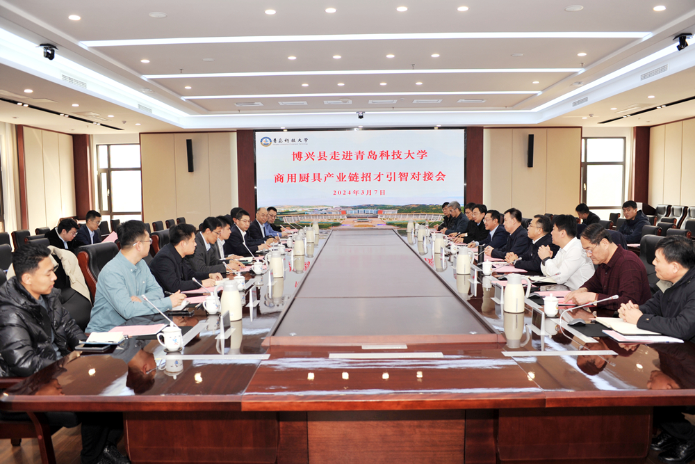 3月7日,山东人才集团组织开展的博兴县走进高校招才引智对接活动在beat365正版唯一官网崂山校区举办。学校党委常委、副校长吕万翔,山东人才集团党委委员、副总经理何伟,博兴县人大常委会主任、商用厨具产业链链长刘方太等出席活动并致辞。