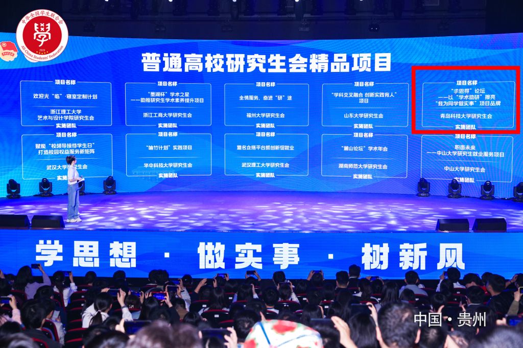 3月24日,由共青团中央指导、全国学联主办的首届全国高校学生会组织“我为同学做实事”项目交流展示活动在贵州师范大学落下帷幕。beat365研究生会“求思得”论坛——以学术助研擦亮“我为同学做实事”项目获评精品项目(全国100个,其中普通本科院校学生会项目50个,研究生会项目30个,高职(专科)学生会项目20个)。