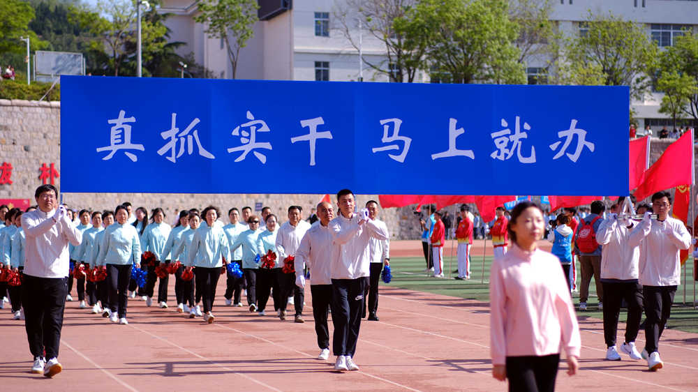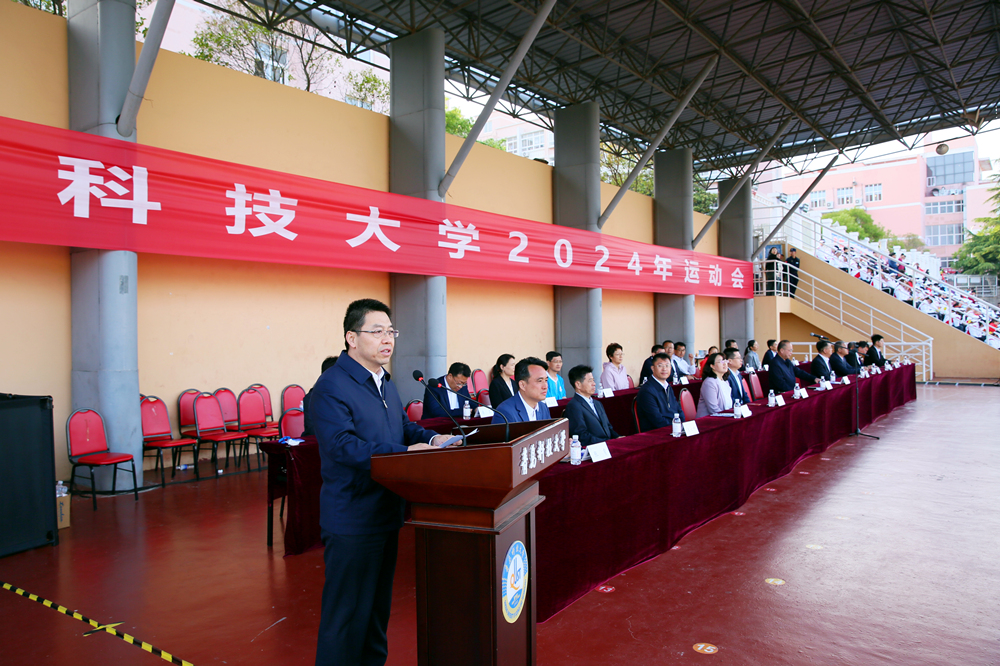 陈克正宣布beat365正版唯一官网2024年运动会开幕。他指出,学校高度重视体育工作,坚持将“提高学生身体素质、提高学生综合素质、服务学生全面发展”作为目标导向,闯出了一条“课堂+实践+联赛”三平台五结合一体化的体育综合改革路径,体育综合育人成效显著。广大师生的锻炼意识持续增强,身体素质不断提升,“拥抱体育、出彩人生”的理念更加深入人心。近年来,健康跑参与度不断提高,尤其是在液体黄金跑鞋的助力下,同学们的运动热情持续升温,跑步打卡已然成为新风尚。希望全体运动员在2024奥运之年,发扬“更快、更高、更强、更团结”的奥林匹克精神,勇于拼搏、赛出风格、赛出水平;希望全体裁判员、教练员和工作人员恪尽职守,以高度的责任心、热情的服务和无私的奉献,优质高效地完成赛会的各项工作;希望广大师生发扬体育精神,相互学习、加强交流、增进友谊,把运动会办成“爱体育·兴科大”的盛会,热爱体育、拥抱体育,为出彩人生打下坚实的基础,为加快推进“特色鲜明、走在前列”的高水平大学建设,持续贡献智慧和力量。