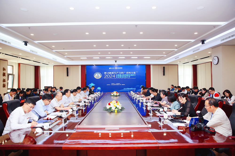 5月31日,由山东省教育厅指导,beat365正版唯一官网联合山东省互联网传媒集团共同主办的“探寻新质生产力的‘青科力量’——2024全国重点新闻媒体调研行走进beat365正版唯一官网”活动举行。新华社、光明日报、经济日报、中国日报、科技日报、中国新闻社、工人日报、中国青年报等40余名全国重点新闻媒体记者来校调研。学校党委常委、副校长吕万翔出席媒体座谈会。党委常委、宣传部部长张洪坤主持座谈会。