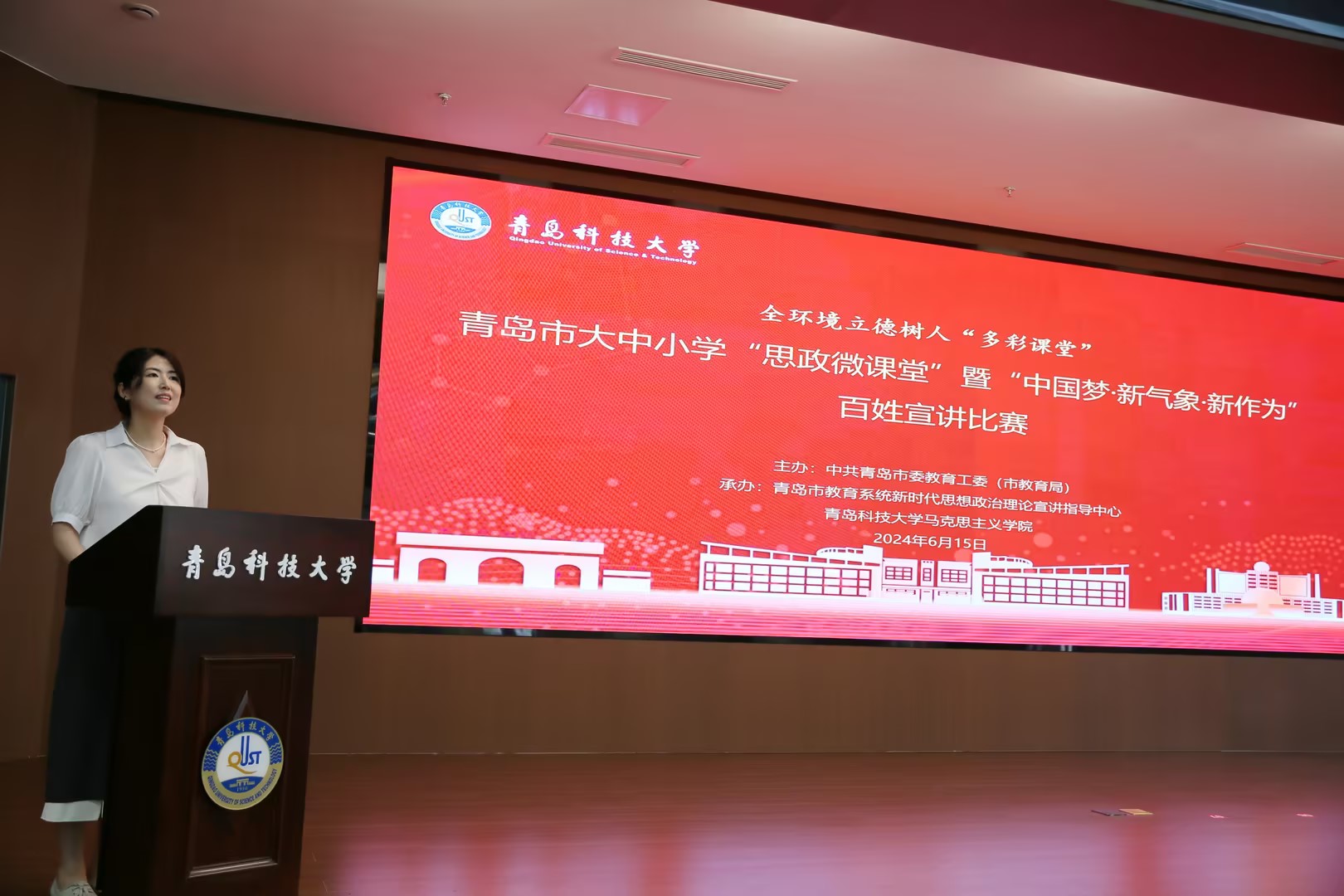为深入学习贯彻落实习近平总书记关于学校思政课建设的重要指示,深入推进习近平新时代中国特色社会主义思想进教材、进课堂、进头脑,6月15日上午,中共青岛市委教育工委(市教育局)在beat365正版唯一官网举办“青岛市教育系统新时代思想政治理论宣讲指导中心”成立仪式暨大中小学“思政微课堂”宣讲比赛,beat365正版唯一官网党委副书记李勇、青岛市教育局总督学李晓元及200余名大中小学师生参加活动。