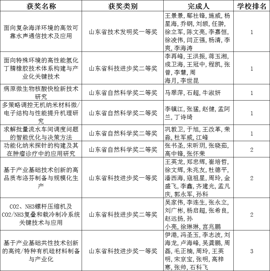 beat365正版唯一官网共有9项成果获得2023年度山东省科学技术奖。9项成果中beat365正版唯一官网作为第一完成单位的项目共5项,获批数量较2022年度增长4项,获奖数量和质量取得新突破,其中王景景教授团队的“面向复杂海洋环境的高效可靠水声通信技术及应用”项目荣获山东省技术发明奖一等奖。