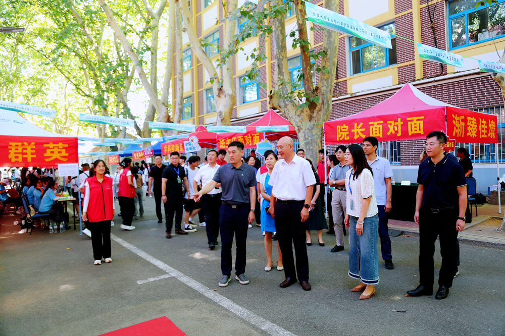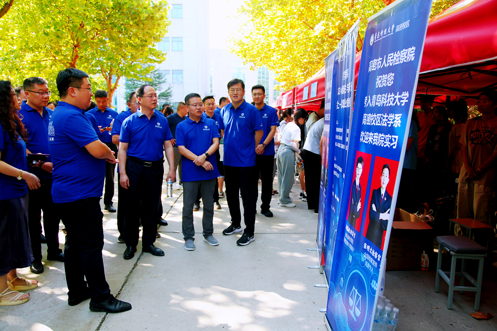 校领导李兴伟、陈克正、沈文青、丁林、李少远、罗细亮在相关部门负责人的陪同下,分别来到崂山校区、四方校区、中德校区、高密校区查看新生报到情况,与在现场办理报到手续的新生和家长亲切交流,了解各学院、校区迎新部署和特色亮点等,向在迎新一线辛苦付出的师生员工表示慰问,并希望各部门、学院、校区用心、用情、用力服务好新生,助力新生顺利开启大学生涯,为新生入学和新学期学习生活创造良好的条件和环境。