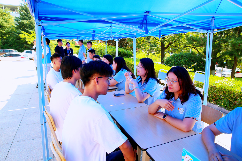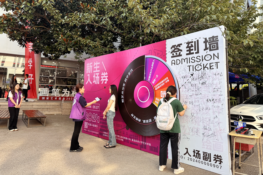 高密校区创意无限,“五新”迎新:爱新,迎新现场,设置五处背景打卡点,在“大学第一照”摄影体验区,新生入学拍照即拍即打即装框,作为进入大学后的第一份纪念礼。荣新,为新生精心准备了“一对一”新生大礼包,内含QUST主题的文创用品,以“校兴我荣”的理念体现校区对新生的关心关怀。明新,打造学科竞赛、就业光荣榜两大宣传展区,让新生们在入学伊始就能对自己四年的大学生涯有初步的感性认识。护新,党员先锋岗、家长休息区、迎新服务点,多渠道多部门为新生及家长提供周到服务。同新,在“迎新活动展示区”,朋辈辅导员们安排了包含科技创新、国防教育、才艺快闪等元素的校园展示活动。