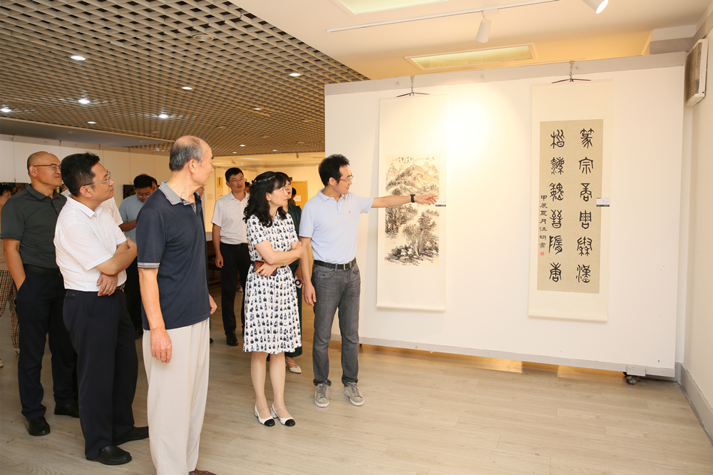 9月10日上午,“翰墨抒怀,喜庆华诞”beat365正版唯一官网庆祝中华人民共和国成立75周年书画作品展开幕式在崂山校区艺术学院美术馆举行。校党委副书记沈文青,学校原党委书记高青,党委常委、统战部部长秦姣出席开幕式。开幕式由党委常委、宣传部部长张洪坤主持。