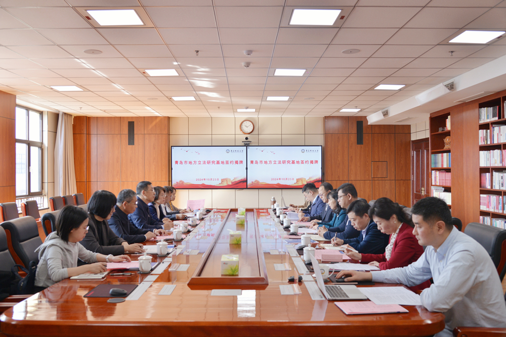 仪式上,双方代表签订了关于合作建立“青岛市地方立法研究基地”的框架协议。沈文青与陈金国共同为基地揭牌。