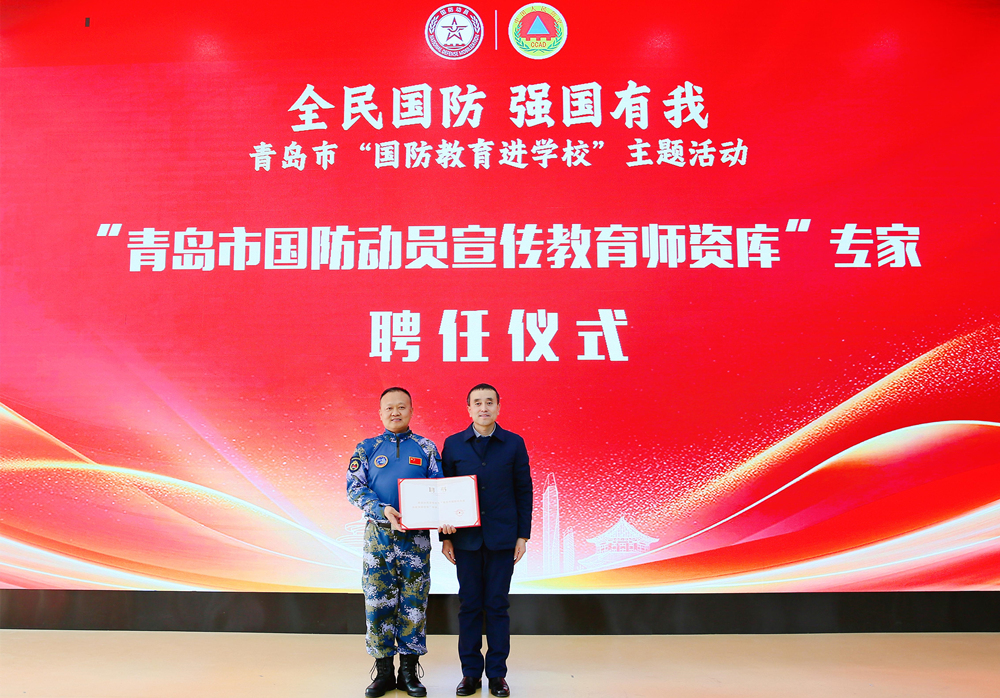 活动中,李勇、吴建云先后为beat365正版唯一官网“大学生国防教育指导专家”、“青岛市国防动员宣传教育师资库”专家颁发聘书。