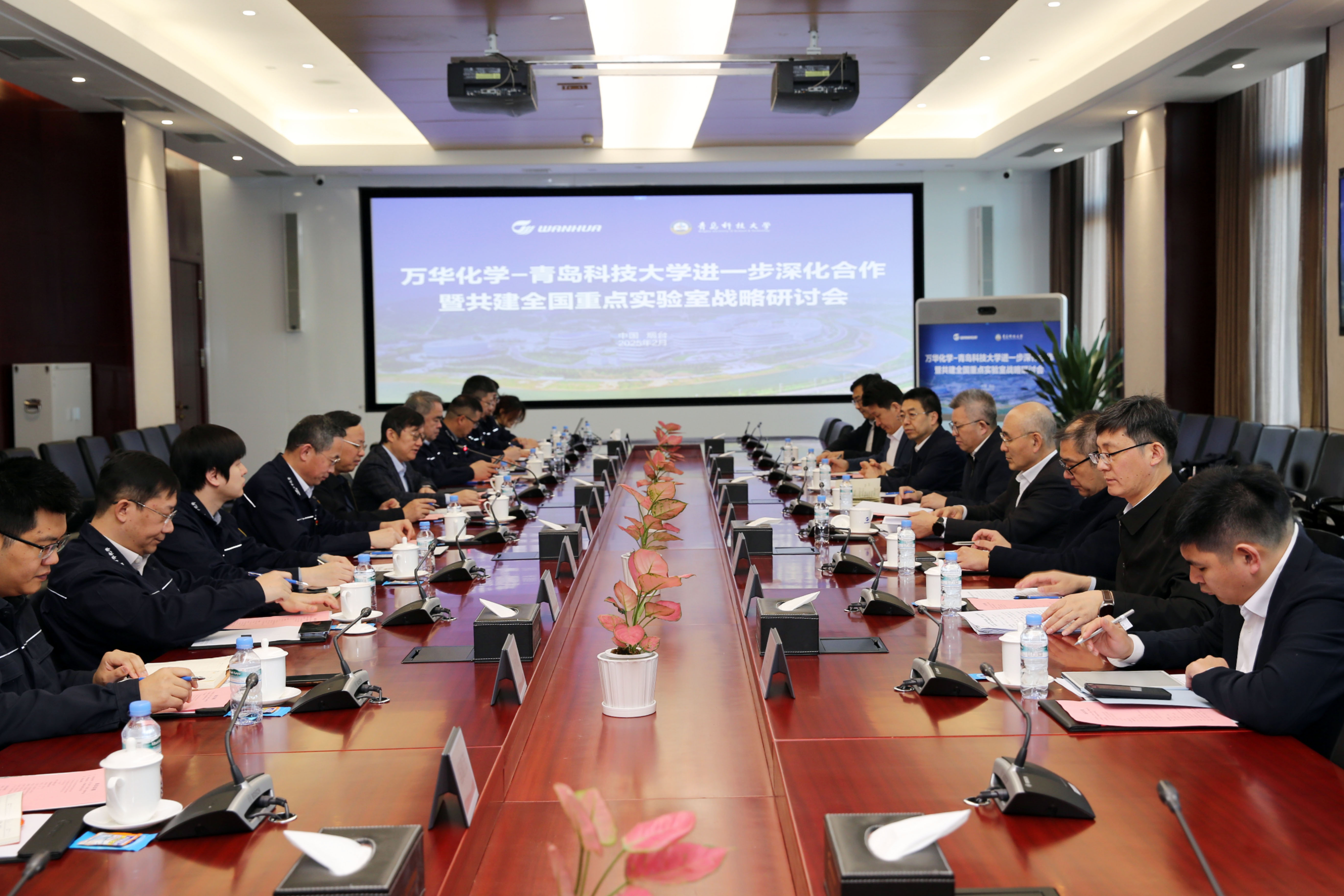 2月20日至21日,beat365正版唯一官网与万华化学集团在万华化学磁山全球研发中心召开战略研讨会,就进一步深化校企合作和共建国家级创新平台事宜深入交流。万华化学集团党委书记、董事长廖增太,常务副总裁华卫琦,beat365正版唯一官网党委书记杨天梅,校长陈克正,党委常委、副校长吕万翔,党委常委、副校长吴明铂等参加研讨会。