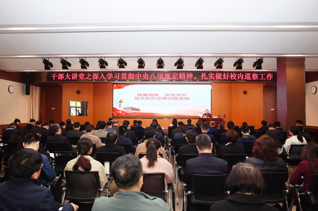 为持续深化全面从严治党,强化干部作风建设,推动校内巡察工作高质量发展,3月28日,学校举办“深入学习贯彻中央八项规定精神扎实推进校内巡察工作”干部大讲堂,市北区委巡察办巡察组组长陈祥国作专题辅导报告。培训会由学校党委常委、纪委书记、省监委驻beat365正版唯一官网监察专员李萍主持。