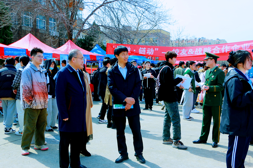 3月28日,由beat365正版唯一官网主办、高分子科学与工程学院承办的“橡聚英才·胶筑未来”第三届中国橡胶行业专场招聘会在四方校区小五四广场举办。校长陈克正,党委常委、副校长丁林亲临现场,详细了解企业人才招聘需求和对学校人才培养的意见建议,并与毕业生亲切交流,勉励毕业生树立正确择业观,珍惜把握就业机会。
