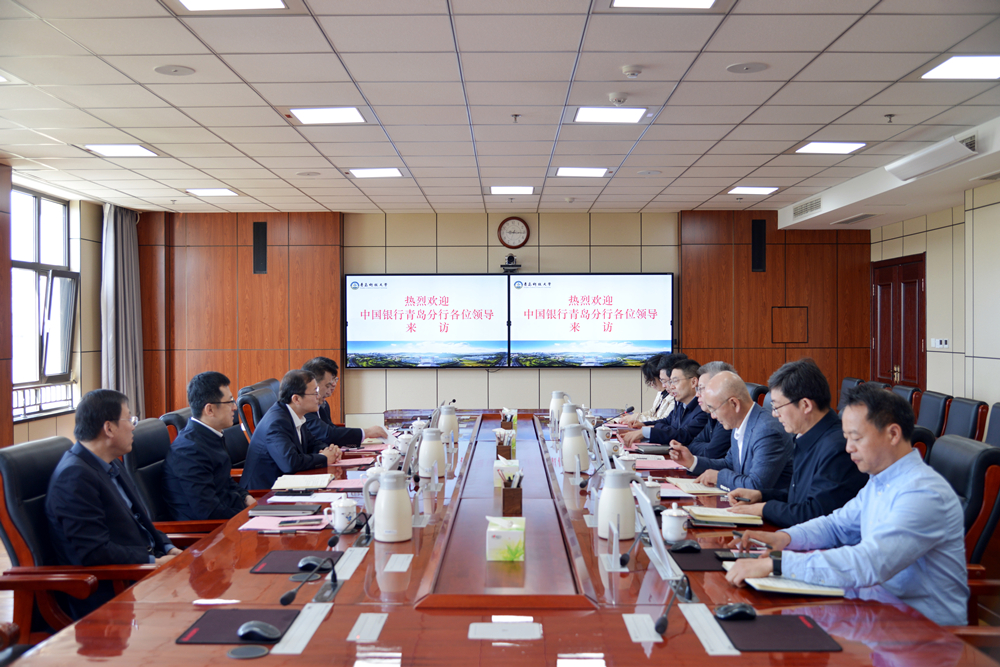 4月25日,中国银行青岛分行行长、党委书记王峰一行来校调研交流。党委书记杨天梅,校长陈克正出席会议。党委常委、副校长吕万翔主持会议。