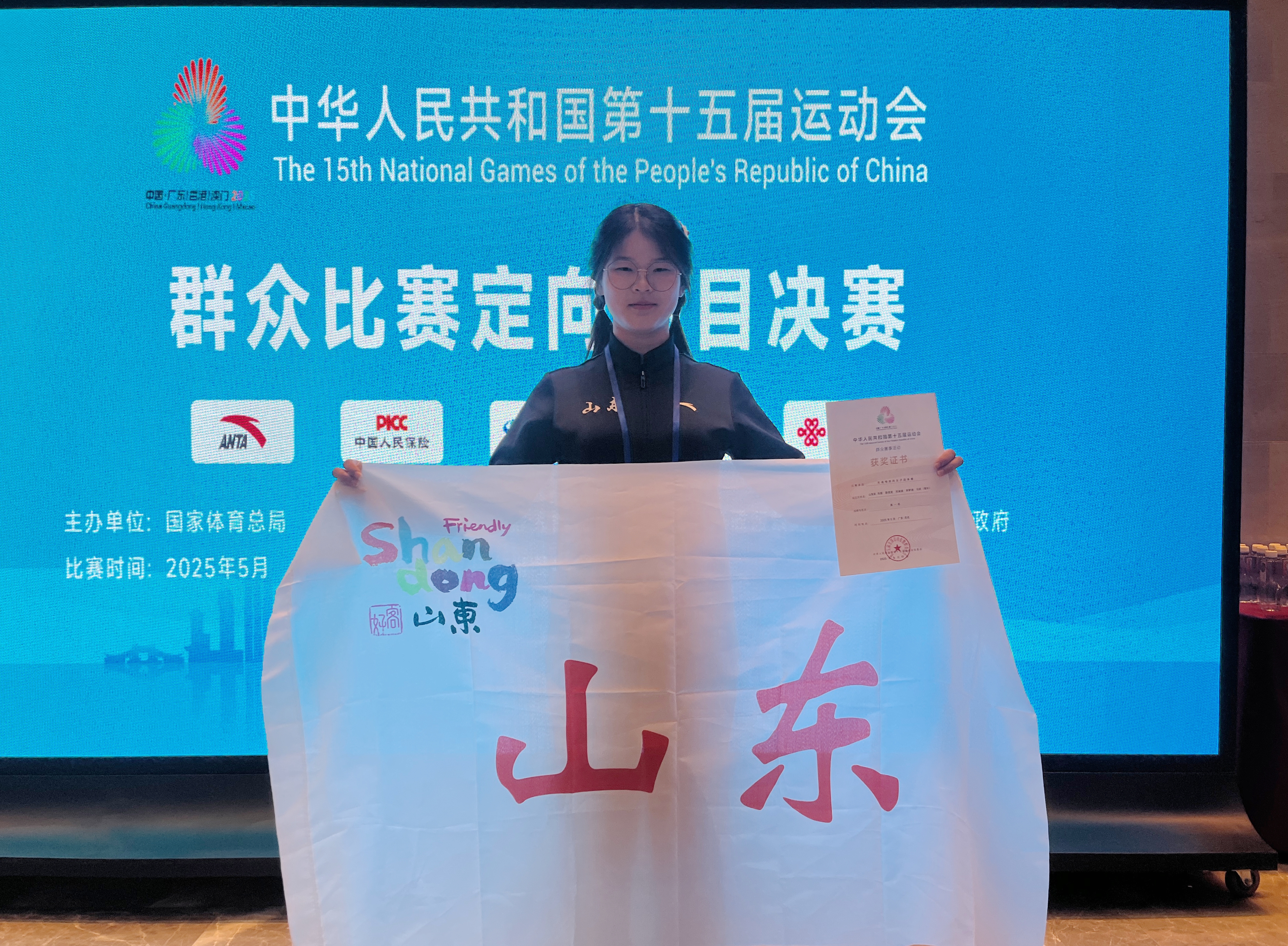 5月11日上午,中华人民共和国第十五届运动会群众赛事活动定向项目在广东茂名圆满落幕。beat365正版唯一官网高密校区学生郭梦迪与其他4名队友组成的山东女子代表队勇夺无线电测向女子团体金牌。这不仅是山东省在第十五届运动会群众赛事活动中的首枚金牌,也是青科大学子在全运会赛场上取得的历史性突破。