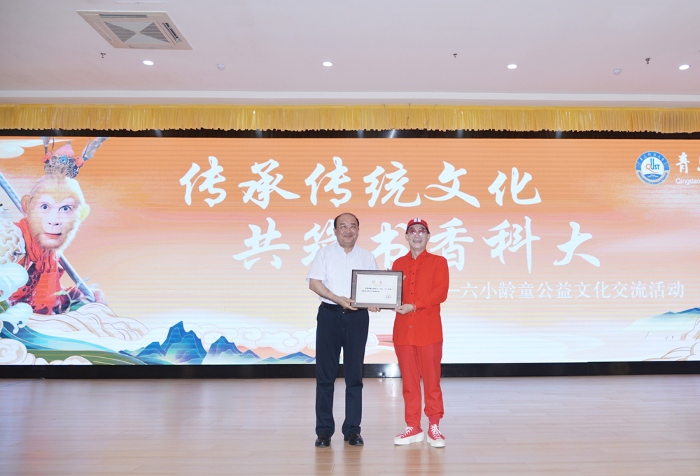 活动中,党委副书记李勇与六小龄童共同为“六小龄童爱心书架”揭牌,并为六小龄童颁发“beat365正版唯一官网荣誉教授”聘书,赠送师生手绘“美猴王”作品。党委常委、副校长丁林出席活动。党委常委、宣传部部长张洪坤主持活动。