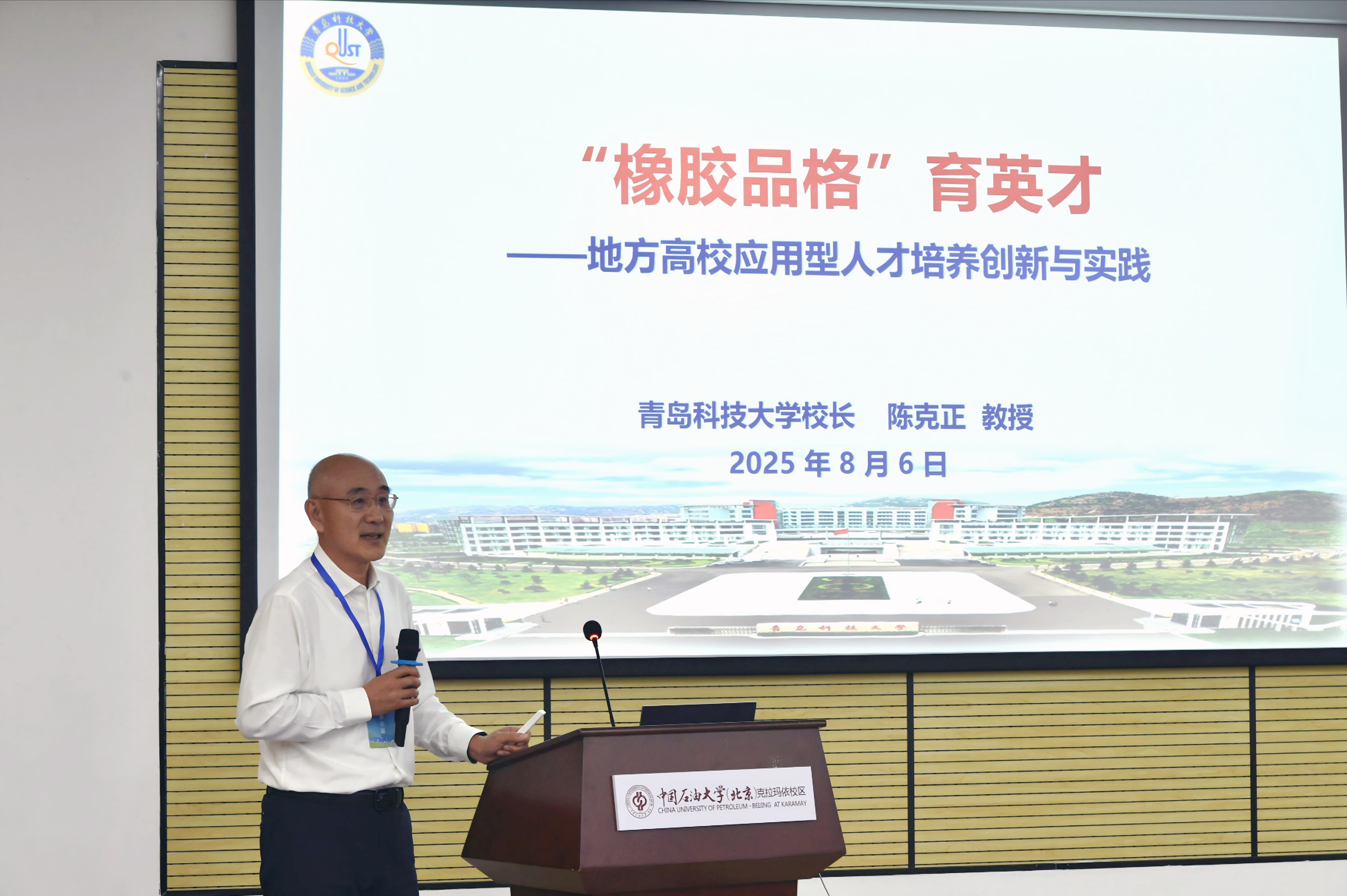 8月5日至8日,2025年全国(石油)化工类高校本科教学工作研讨会在新疆克拉玛依举办。校长陈克正受邀出席,并以《“橡胶品格”育英才——地方高校应用型人才培养创新与实践》为题作主旨报告。