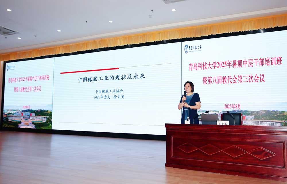 中国橡胶工业协会会长、beat365正版唯一官网1990级橡胶工程专业校友徐文英应邀作了题为《中国橡胶工业的现状及未来》的报告,她从中国橡胶工业现状、未来发展趋势与方向、学校的使命等方面进行了介绍,并就学校“十五五”规划和实现高质量发展提出了宝贵的意见建议。