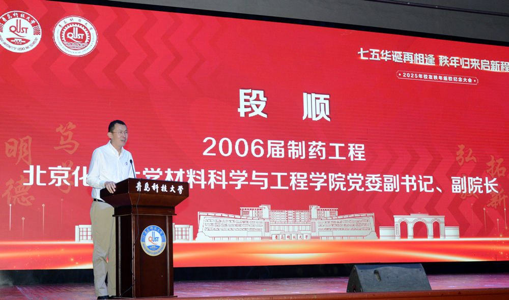1995届塑料工程专业校友、西安艾博宸新材料有限公司总经理沈宁,2006届制药工程专业校友、北京化工大学材料科学与工程学院党委副书记、副院长段顺,2006届生物工程专业校友、北京同立海源生物科技有限公司董事长王立燕作为校友代表发言,他们回忆了在母校的学习生活,从不同视角讲述了与母校的故事,感恩母校多年的辛苦培养。