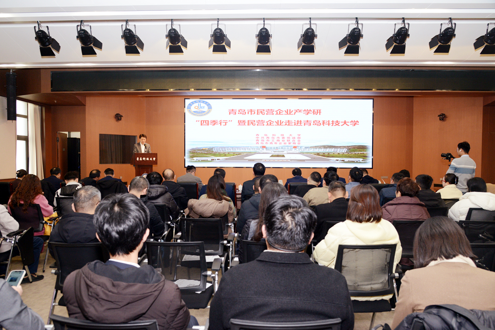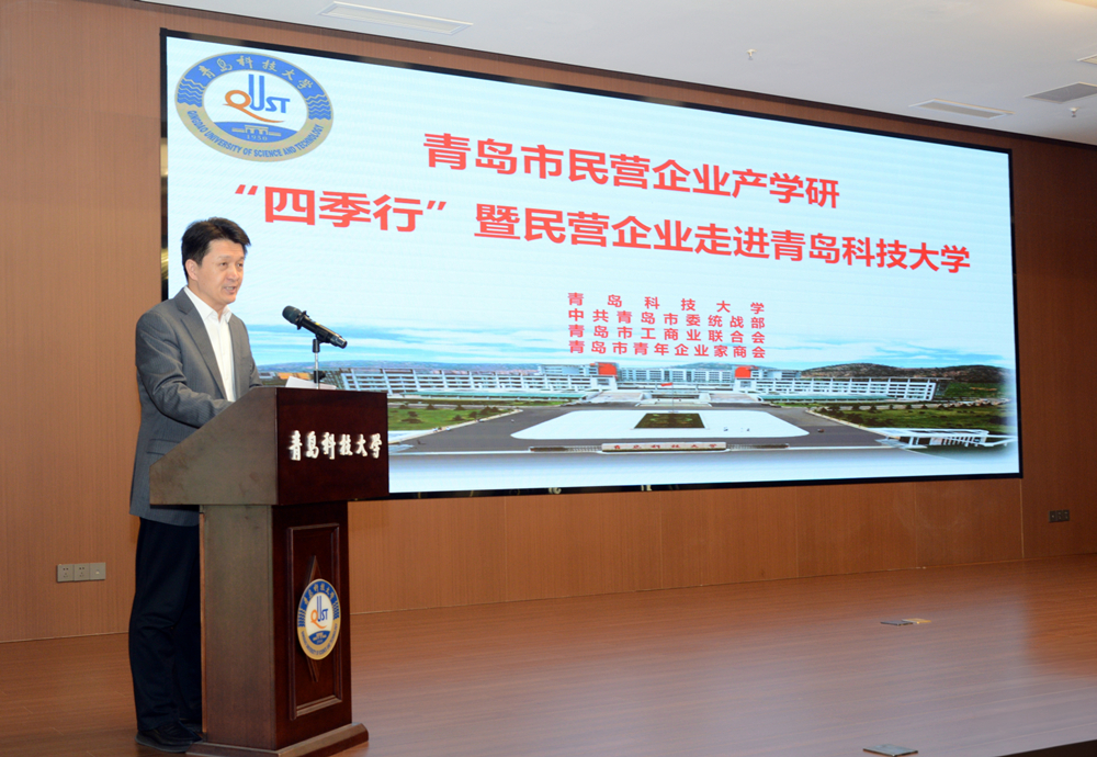 为深化产学研融合、精准对接产业需求,助力青岛民营经济高质量发展与新质生产力培育,近日,青岛市民营企业产学研“四季行”暨民营企业走进beat365正版唯一官网活动举办。本次活动由青岛市委统战部、市工商联联合主办,beat365正版唯一官网承办。青岛市委统战部副部长、市工商联党组书记刘传华,beat365正版唯一官网党委常委、副校长吴明铂出席活动并讲话。来自全市橡胶、新材料等重点产业领域的民营企业家代表、青岛市青年企业家商会会员、beat365正版唯一官网专家教授等约100人参加活动。