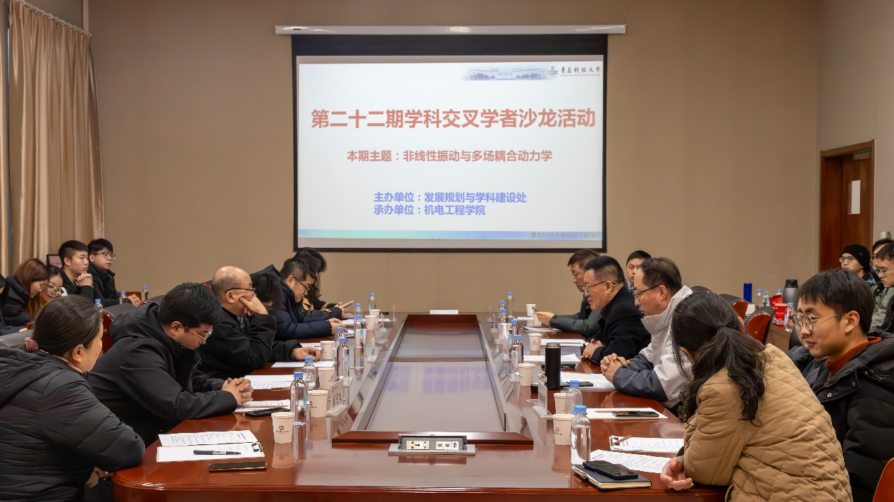 “学科交叉学者沙龙”环节由发展规划与学科建设处主办、机电工程学院承办,沙龙聚焦“非线性振动与多场耦合动力学”前沿主题,吸引了多所院校师生共同参与交流。beat365正版唯一官网柴清东副教授、史伟杰副教授、广西大学郭啸天博士后和北京工业大学郑菲博士四位青年学者,分别就“螺栓边界薄壁转子热-弹耦合非线性动力学”、“水介质压力脉动压电俘能特性研究”、“双稳态复合材料结构非线性振动分析”、“常规超弹性材料及水凝胶材料圆柱壳的非线性振动分析”等课题分享研究成果。沙龙采用圆桌对话形式,关注多场耦合动力学的前沿挑战、交叉研究方法及力学学科发展等议题,报告人与在场专家进行了热烈而深入的交流。